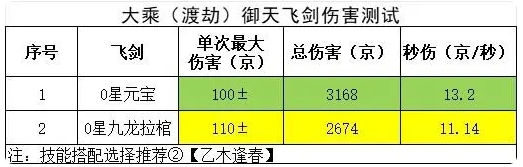 飛劍選擇方面,用0星九龍拉棺和0星元寶進(jìn)行測試,數據如下