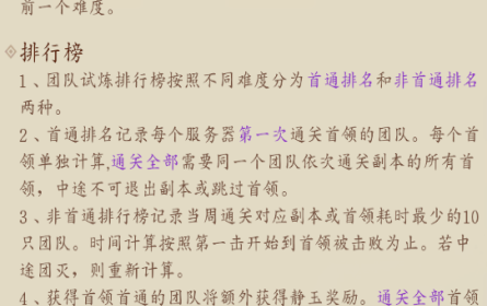 對新手隊伍來(lái)說(shuō),以開(kāi)荒為主的話(huà),提前看好相關(guān)攻略?xún)热?,有了一定了解后,再遇到相同境遇?huì )要好的多。隊伍里盡可能的找高戰,多組些奶和赤陽(yáng);以通關(guān)周任務(wù)拿獎勵來(lái)說(shuō)的話(huà),開(kāi)本前要提前問(wèn)好有沒(méi)有不懂機制的玩家,提前交流好教給新人隊員怎么打,需要注意的地方,這點(diǎn)對于一個(gè)宗門(mén)高管帶隊人員來(lái)說(shuō)尤其重要,耐心是很重要的。