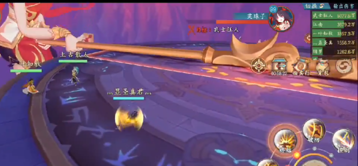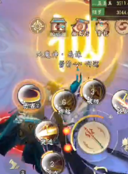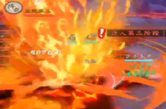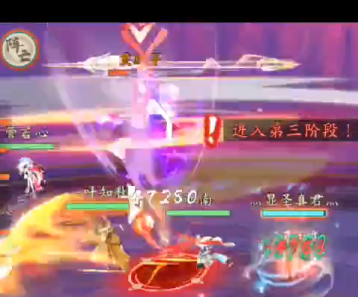 羅睺化魂變身,飛至半空,蓄力弒神槍。玩家需要根據系統提示操作抵御;