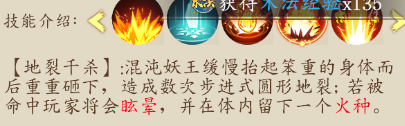 注:這個(gè)技能可以說(shuō)不算是BOSS技能,說(shuō)是福利更貼切一點(diǎn),場(chǎng)地中會(huì )刷新4-5個(gè)小魔兵,玩家擊殺后會(huì )有個(gè)光團,可以吃掉的,吃完后會(huì )有個(gè)額外的技能【如上圖顯示】,技能圖片解釋的比較模糊,直白一點(diǎn),在BOSS飛天落地后,此技能才可對BOSS釋放,削弱BOSS熱量值,三層意思,1.削弱BOSS技能一所獲得能量值。2.降低玩家所受技能傷害。3.降低灼傷狀態(tài)的增幅。