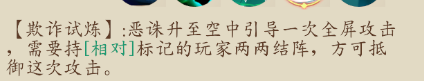 注:BOSS釋放此技能時(shí),地圖中會(huì )出現兩個(gè)陣法,玩家需要站到陣法中才可免傷。但是,一定要相對標記玩家,就是不同陣營(yíng)歸屬。