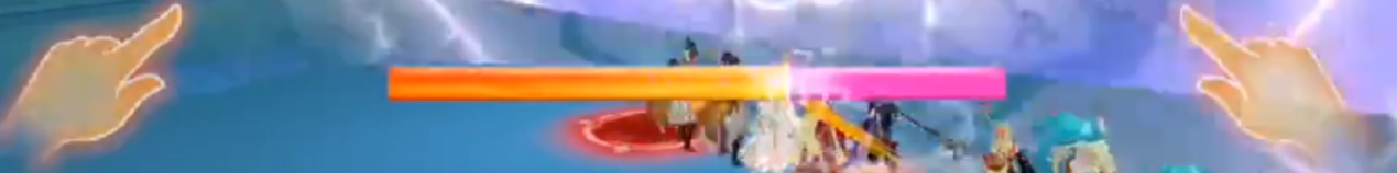 需要全體玩家手指不斷點(diǎn)擊兩面手形位置處。直至黃色能量蓄滿(mǎn)。如果失敗,則直接滅隊。